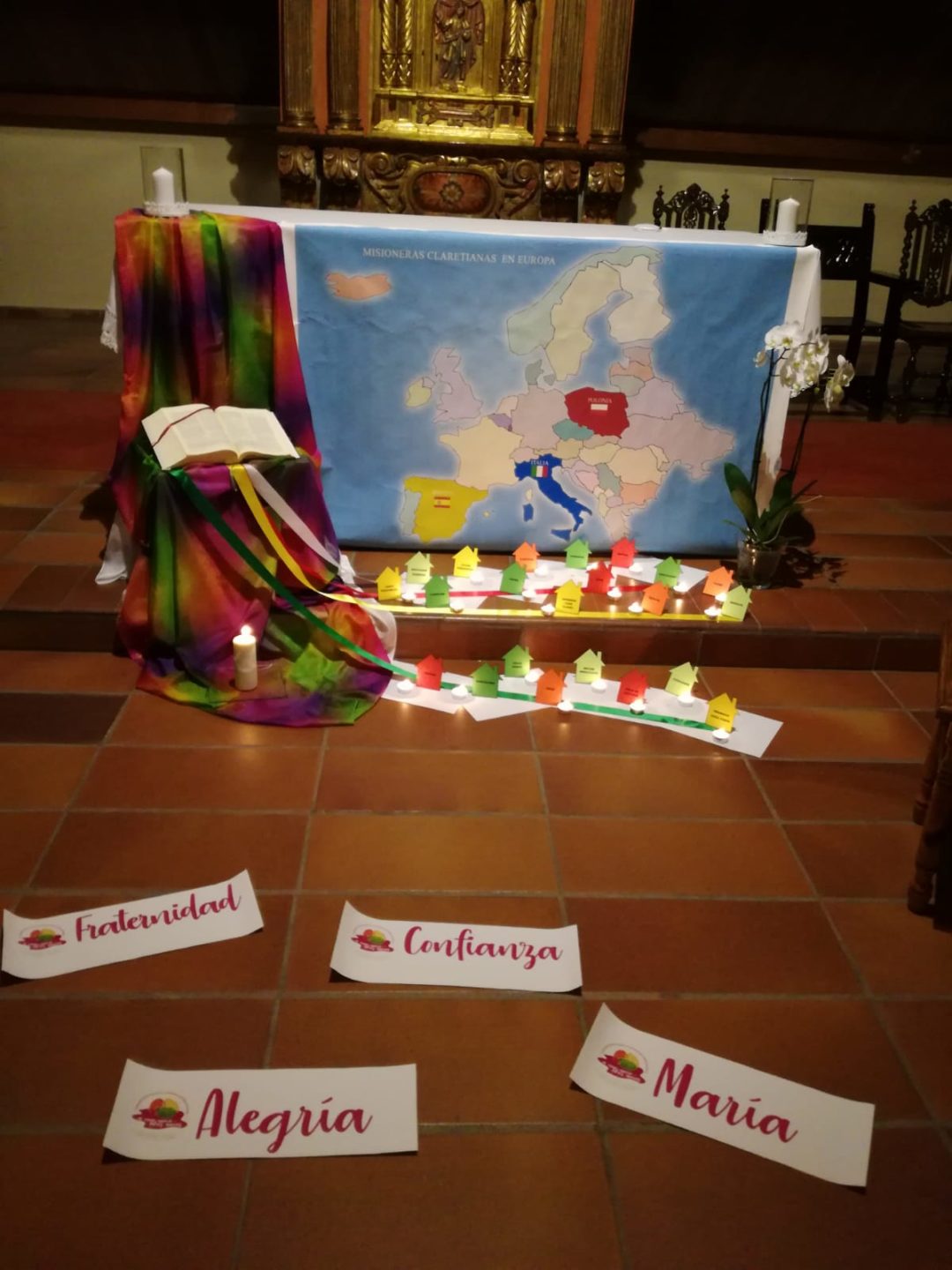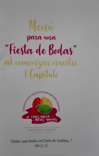 Tomando como referencia el lema de este Capítulo: «A vino nuevo, odres nuevos», comenzaron con una bonita dinámica de acogida, de «Fiesta de Bodas», ambientada en esta ocasión no en Caná de Galilea, sino en Collado de Galilea. Fue un momento distendido, que les permitió compartir en pequeños grupos, inquietudes, esperanzas, sueños… en este proceso de construcción, en fraternidad, de esta joven Provincia de Europa.